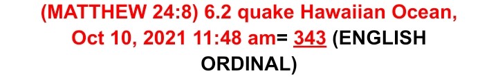 For this post I wanted to continue a bit further into the October 10, 2021 6.2 Hawaiian Earthquake anomalies. Below is some additional information about this “birth pain” (Matthew 24:8). Thank you and God bless you.